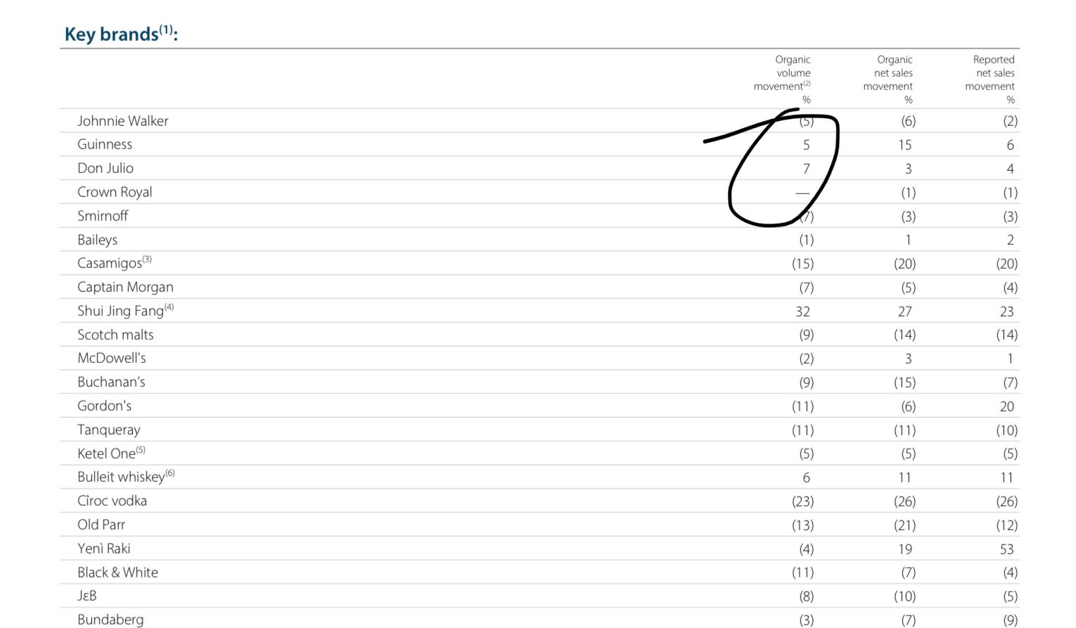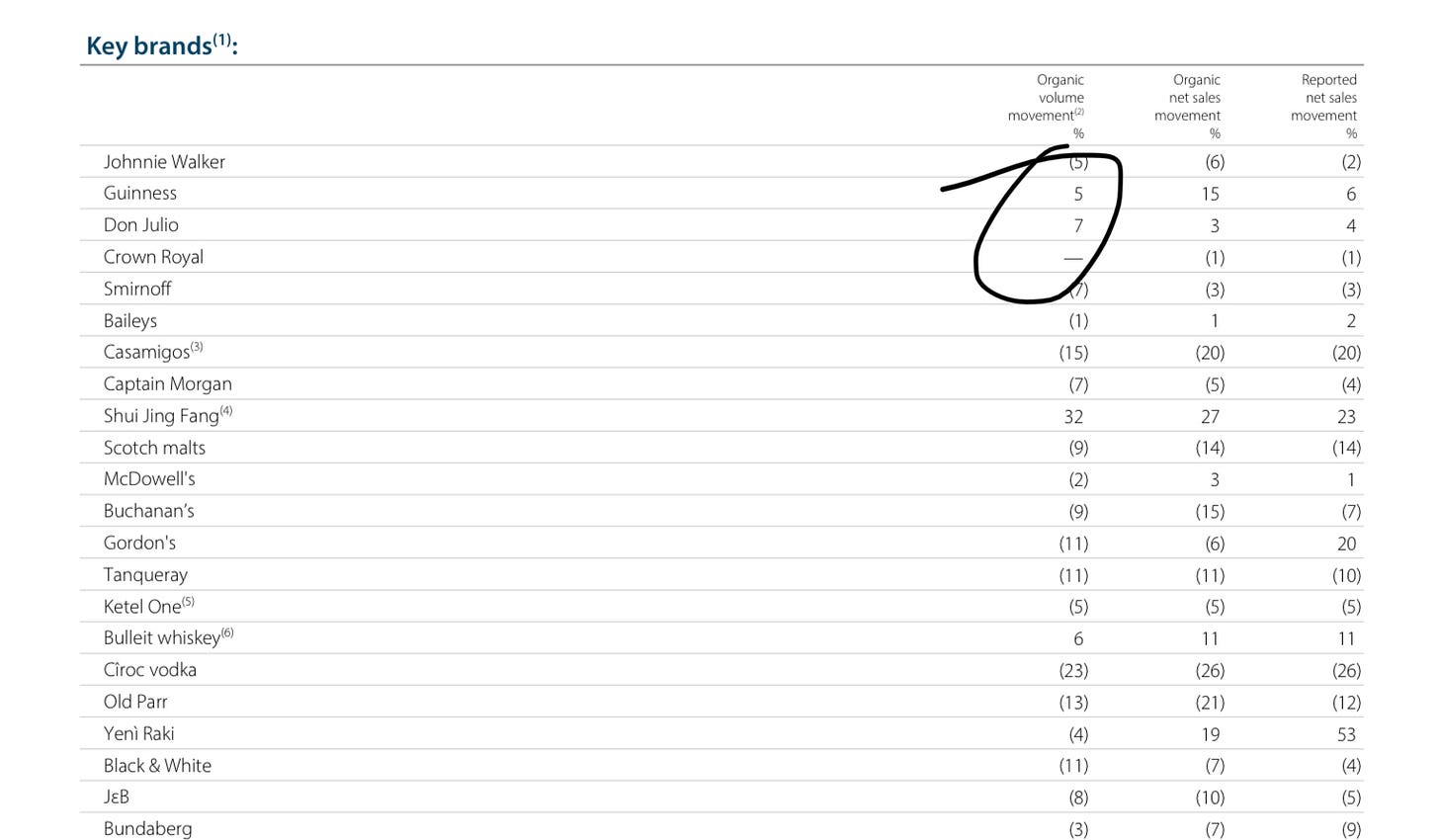 This too — taken from Diageo’s earnings. What’s selling good, kids? GUINNESS. Guinness is selling good.