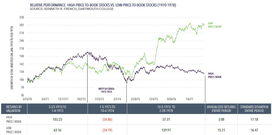 I love this one — what does that tell you! Price is what you pay value is what you get! Obviously the bulk of tech stocks strike me as more than rhyming with the “nifty 50” of the 60s/70s. Something to think about.